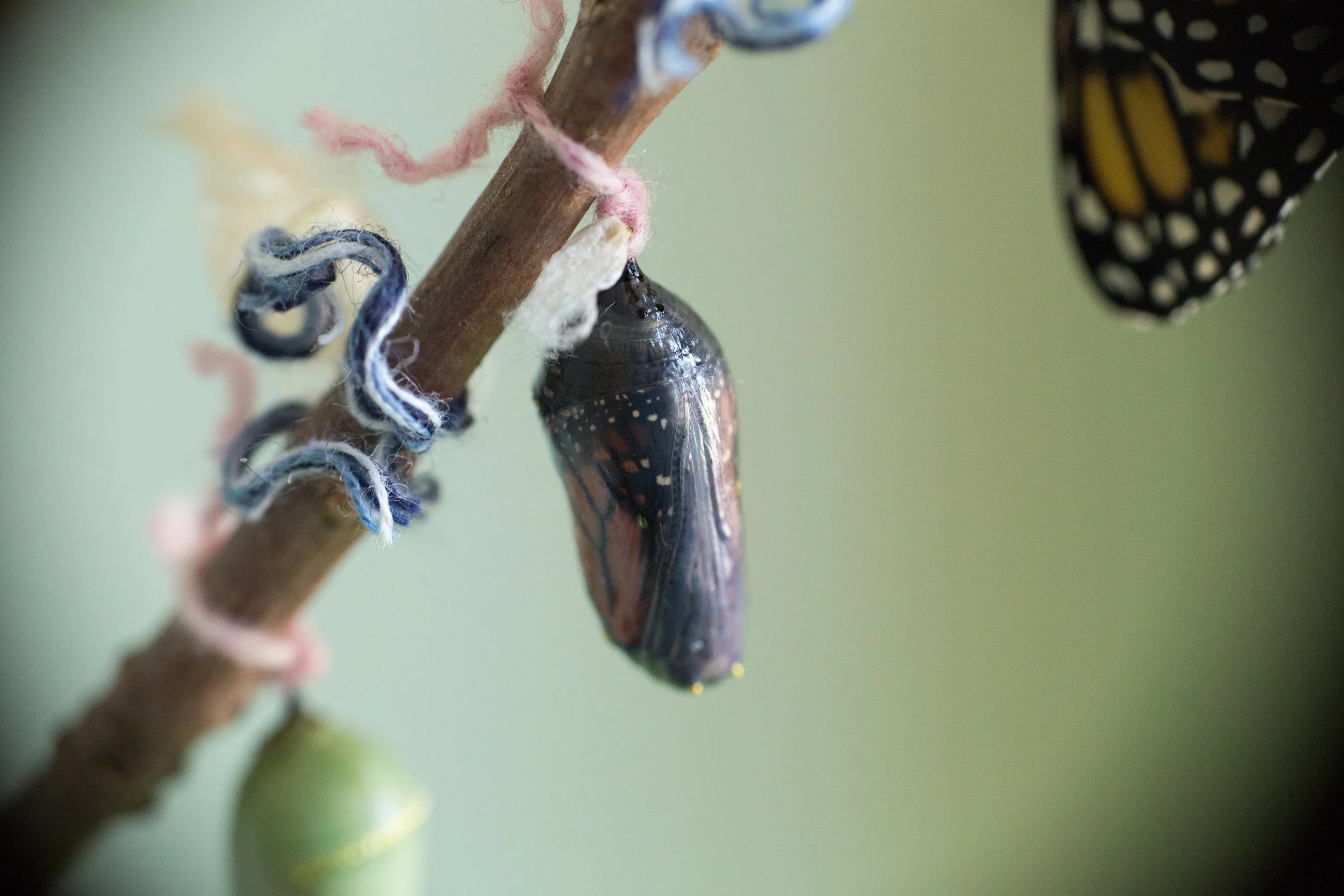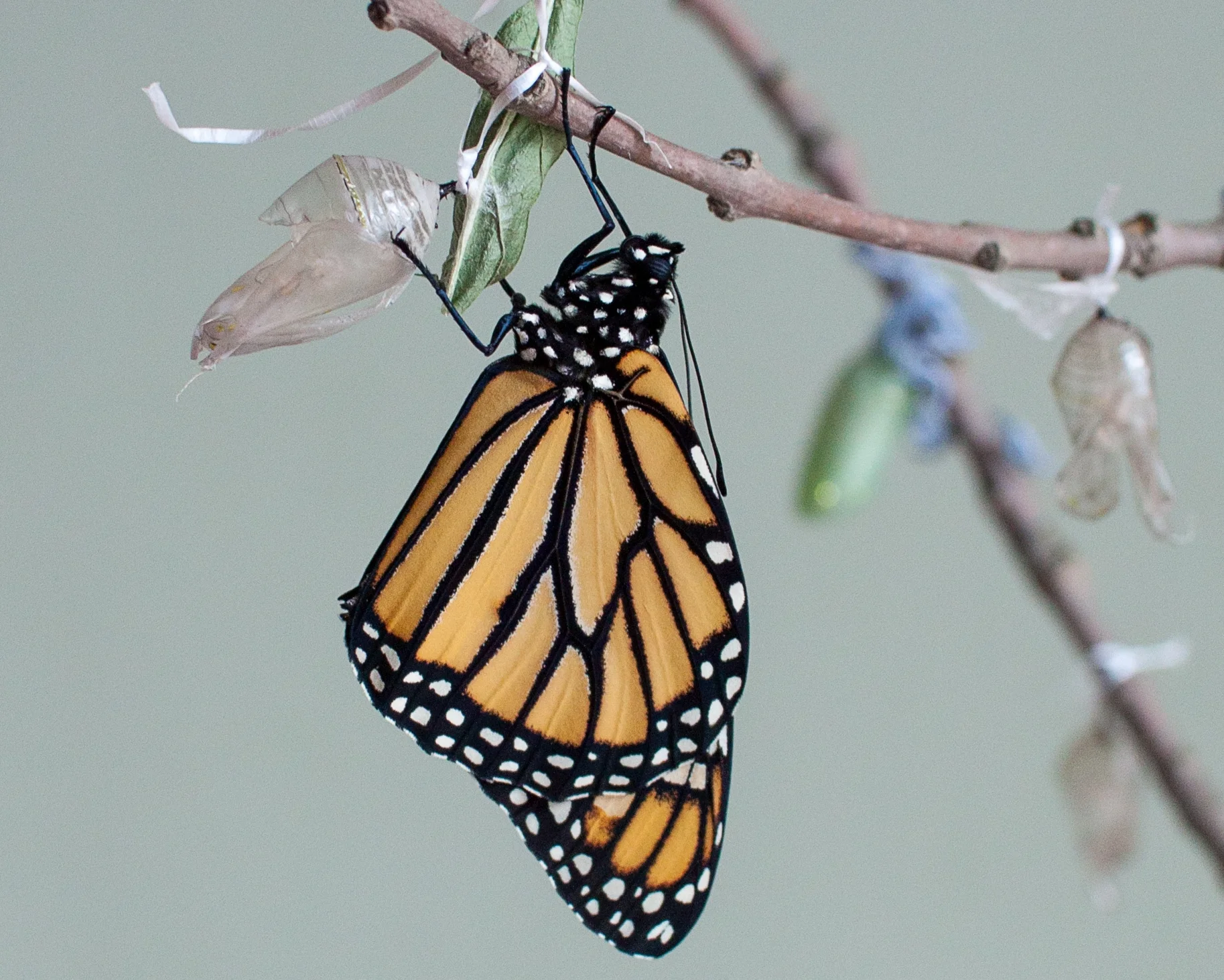 The chrysalis as it appears on the day the butterfly emerges. It has been in this form between 8-14 days, depending on the time of year.